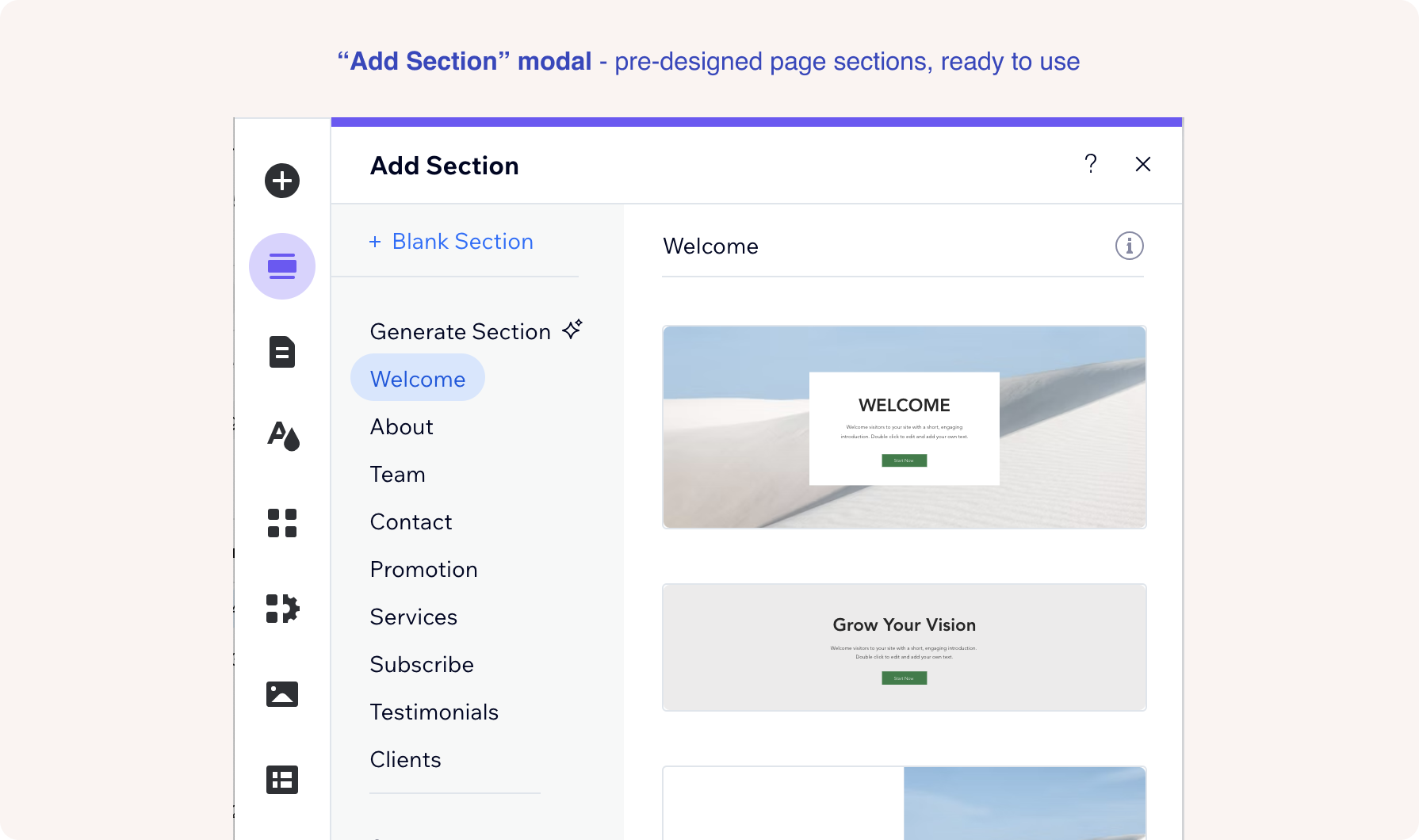 Following the success of the first module, we launched a second builder - Add Section - based on the same product methodology, but designed for adding individual sections within a page.
