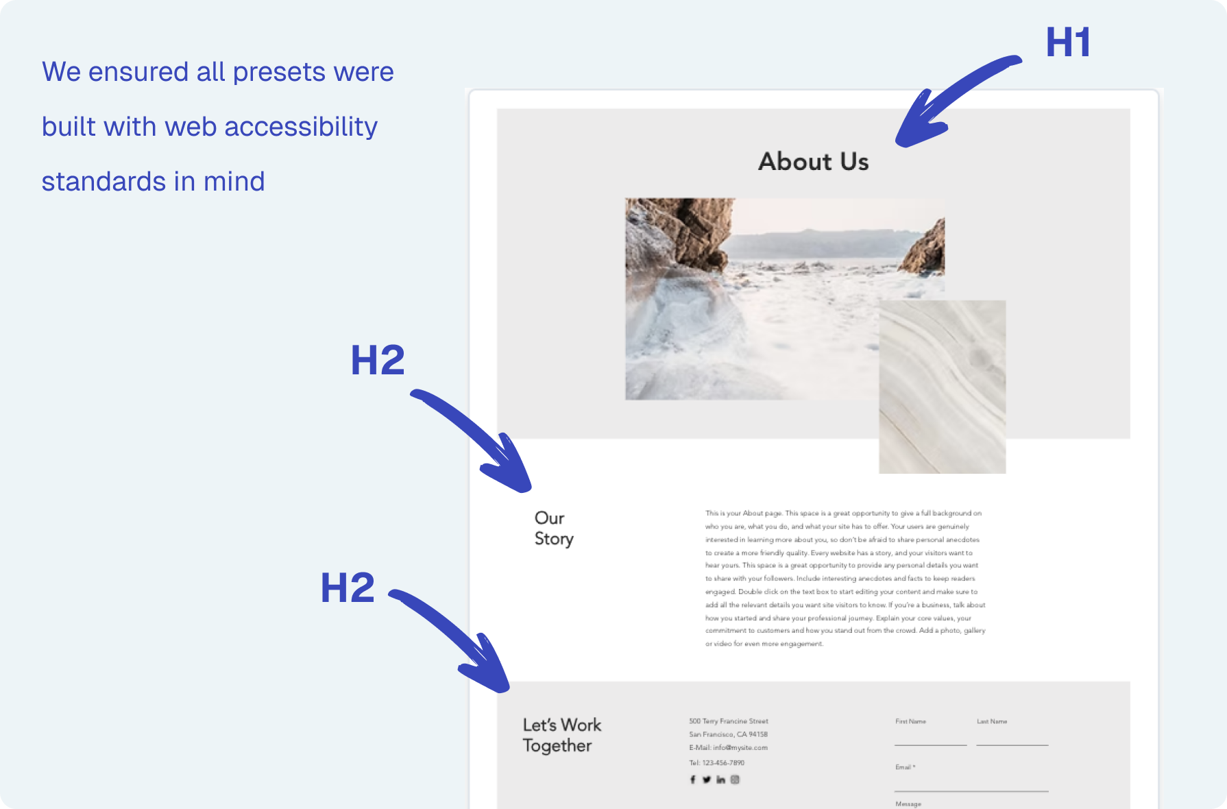 - Content creation is overwhelming, and pages don’t adapt well to mobile, resulting in cluttered Websites with poor hierarchy and accessibility issues.